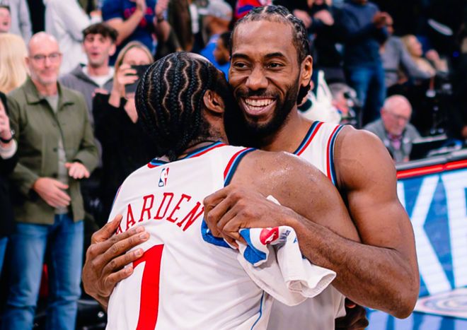 那这一周多时间,快船呈现什么水平?哈登和小卡都是场均21.3分,祖巴茨场均15.5分,科林斯场均11.3分,就这四人得分上双。哈登是队内得分王+助攻王+罚球王,赢太阳的比赛,包括带队半场反超勇士,他可以说是快船队内表现最正常的。其他人呢?直接看数据:伦纳德在场时,快船百回合净输对手15.9分;不在场时,快船百回合赢26.9分;于是小卡的On-Off值是-42.8!祖巴茨On-Off值是-12.2,德里克琼斯是-14.8,保罗是-19.4,比尔是-2.9,邓恩是-3.6。哈登呢?在场百回合球队赢3.5分,不在场球队百回合输12.9分。
