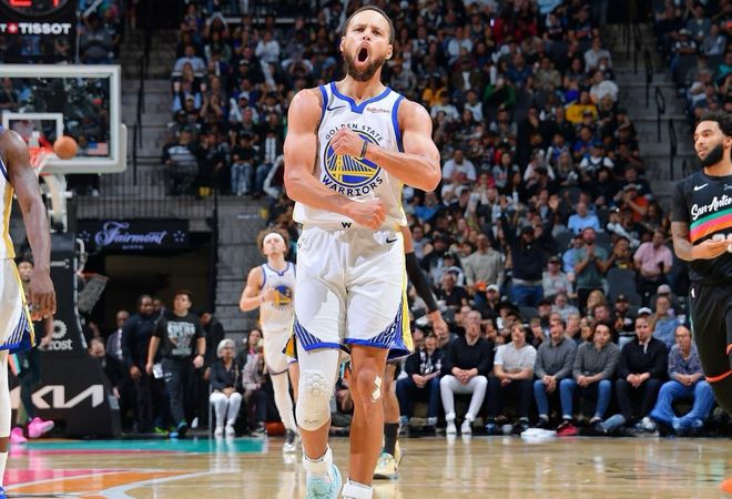 库里跳投+巴特勒三分止血,半场勇士追到49-56。进入第三节,不断在防守端被点名的库里终于爆发,突破造犯规后顶着文班亚马强投三分,随后借掩护再中三分!巴特勒三分球续上火力,库里继续造犯规+造三分犯规!中段库里撤步三分反超打停马刺,急停中距离跳投还有,跳投打板也中!节末巴特勒和霍福德内外开花,三节结束时,勇士92-84马刺。决战第四节,福克斯联合文班亚马追上比分,巴特勒和理查德下三分雨,此后双方陷入胶着。最后5分钟,库里和文班亚马对飙三分,此后库里继续造杀伤,文班亚马补篮。
